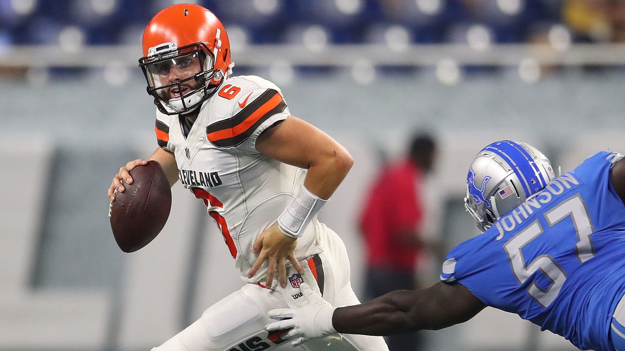 In Thursday's preseason game against the Detroit Lions, Mayfield led three scoring drives but looked uneasy at times in the pocket. He appeared to have happy feet even when he had a clean pocket, and would take his eyes off his receivers downfield in order to look at the rush around him.