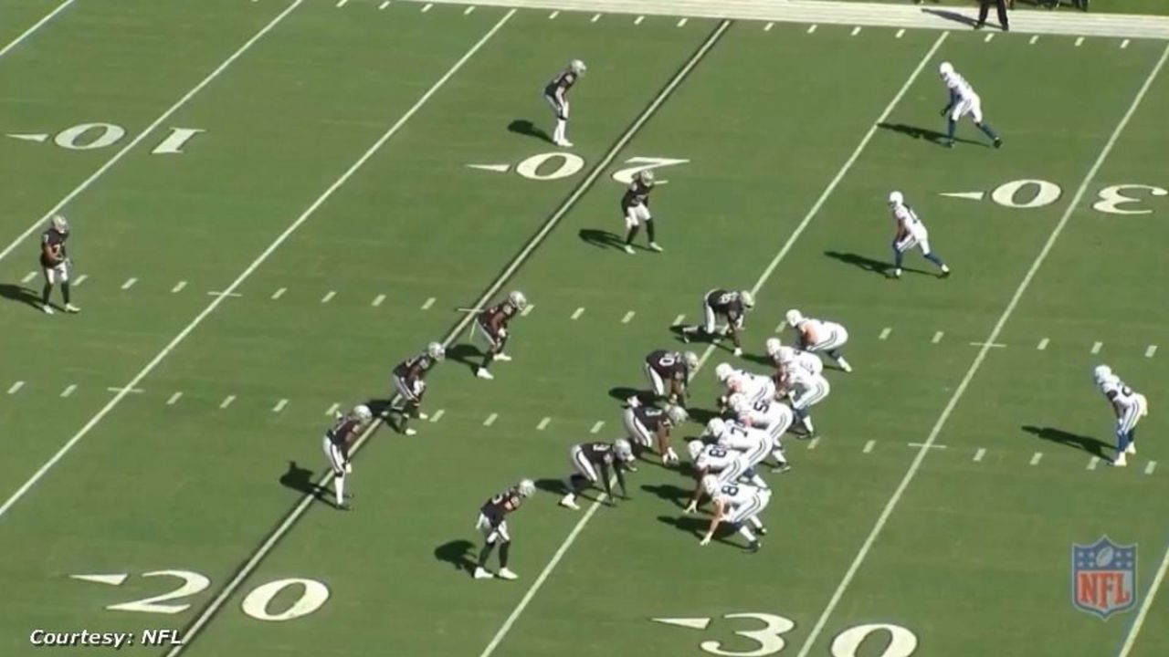 That creates a bracket on the two inside seam routes around Ramsey. Luck can look at one seam route, and then throw to the other one, all while manipulating Ramsey with his eyes. Which is exactly what he does.