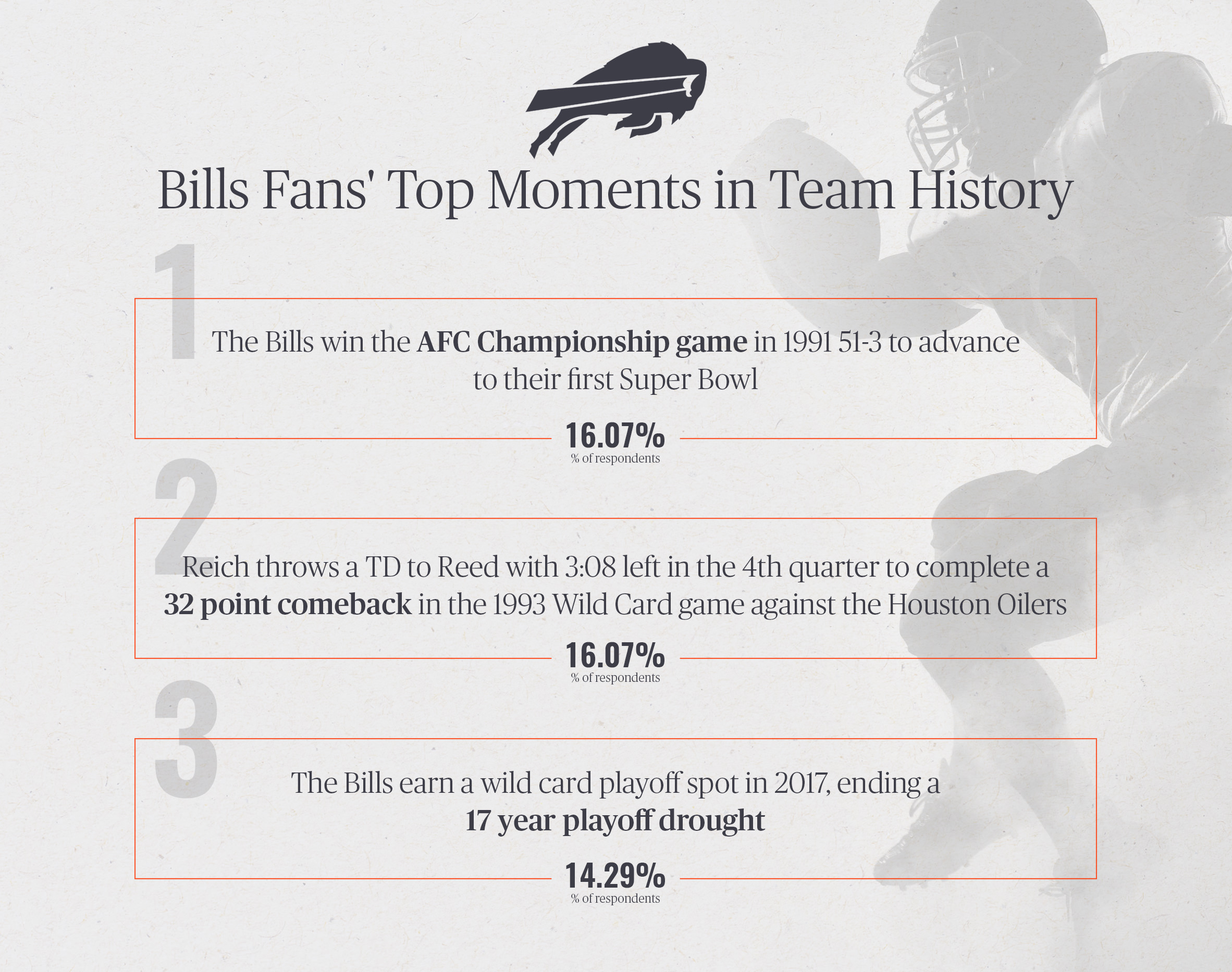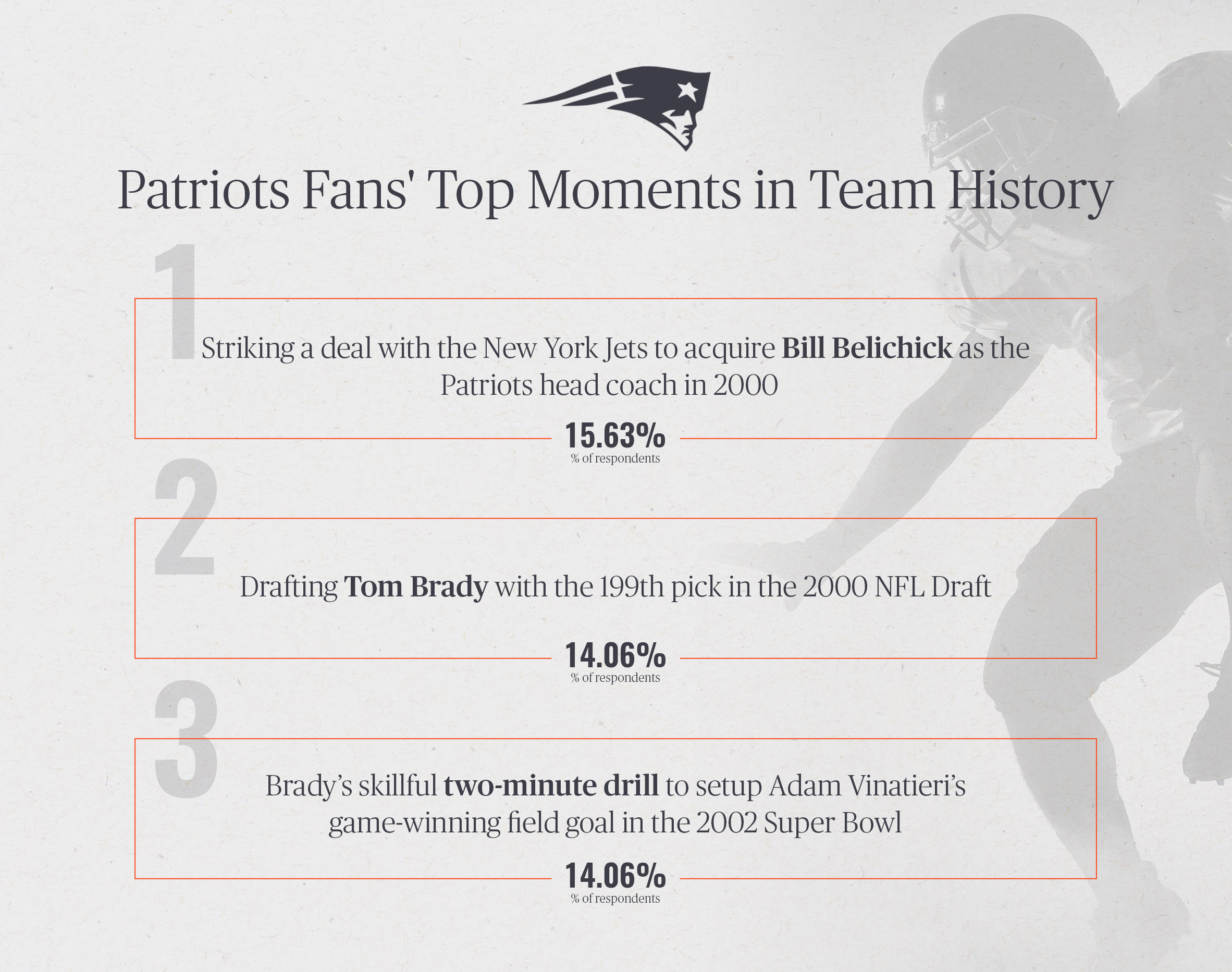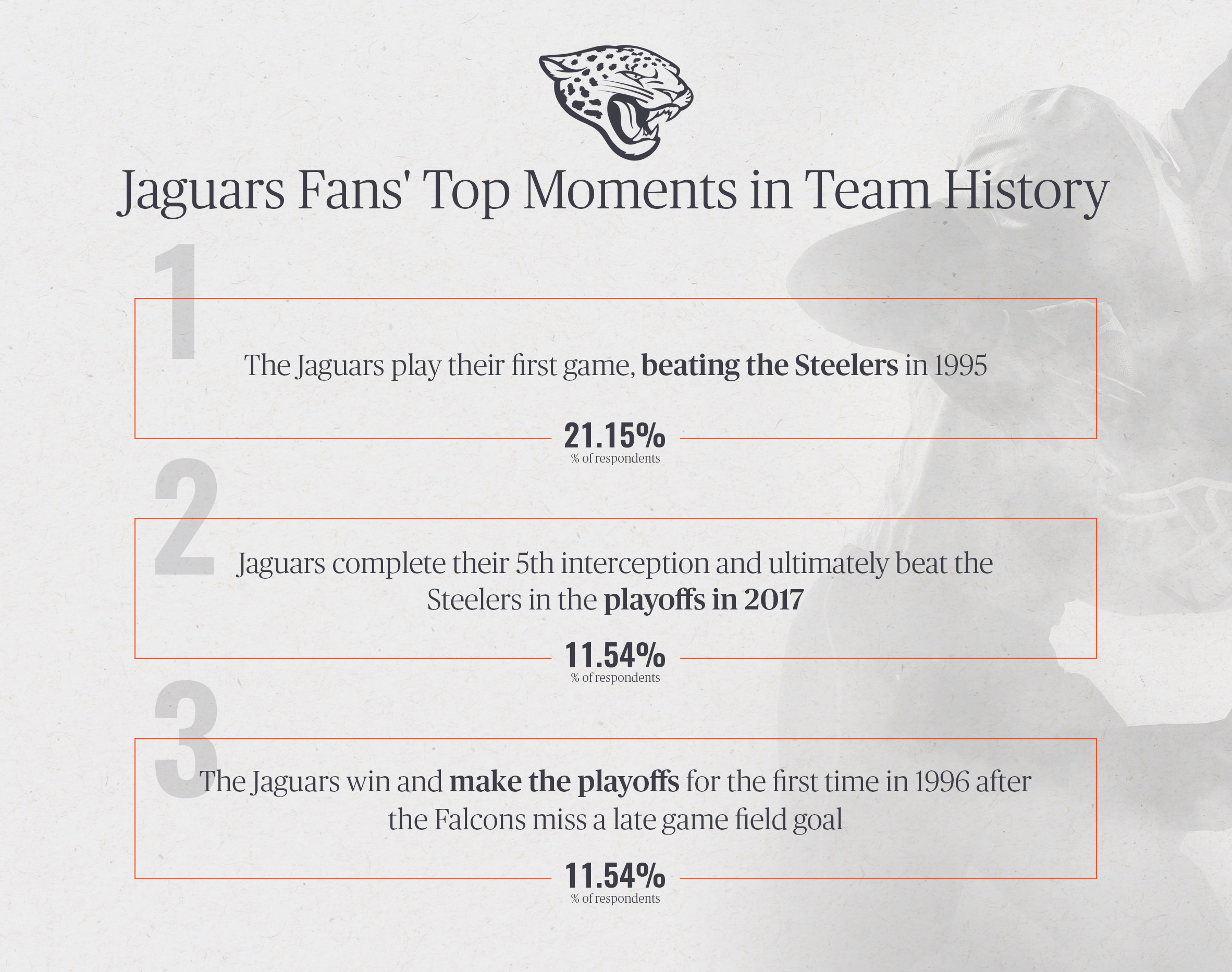 Framebridge surveyed 700 fans of select NFL teams to see what they would rank as the top moments in their franchise's history. Here are some of the findings: