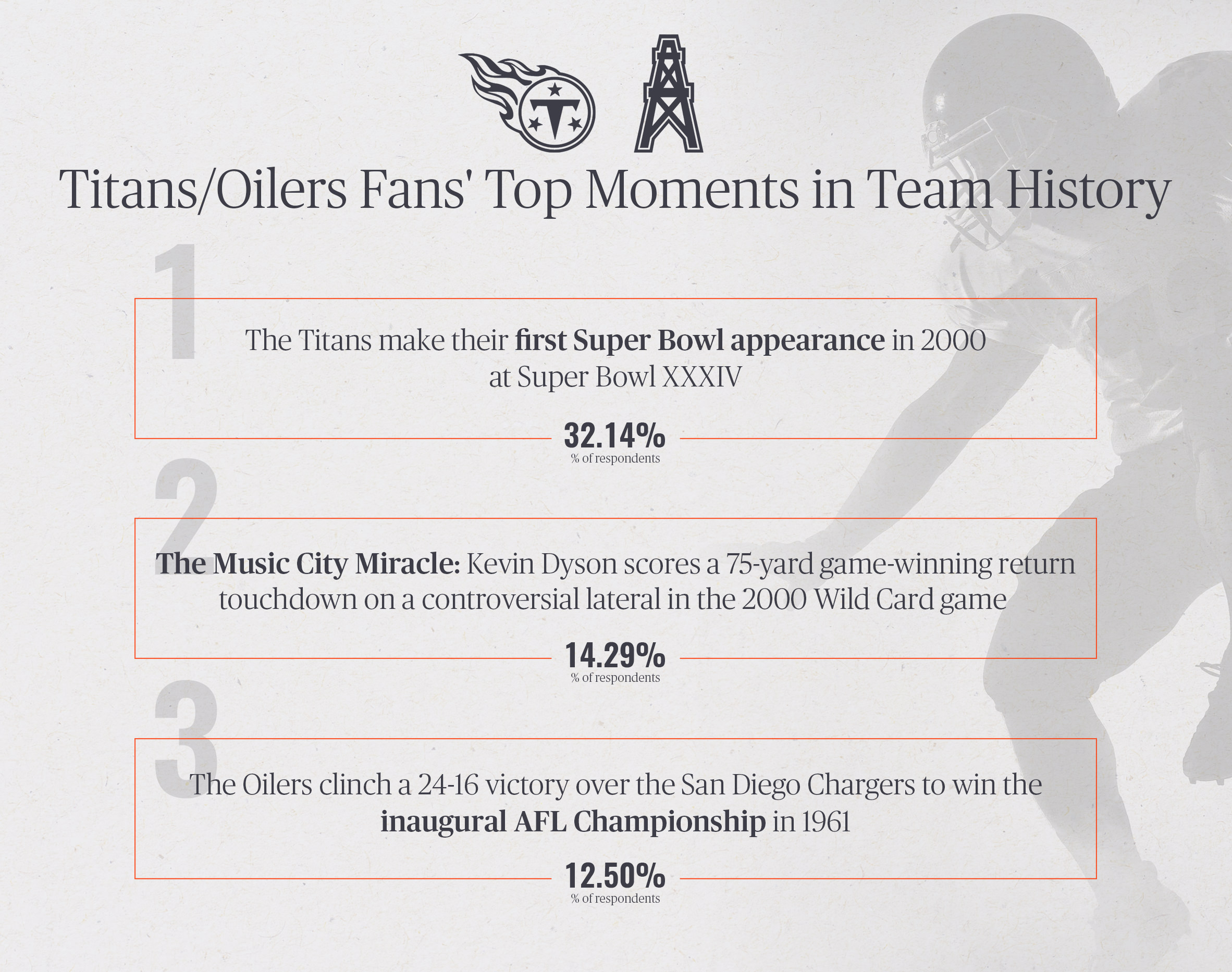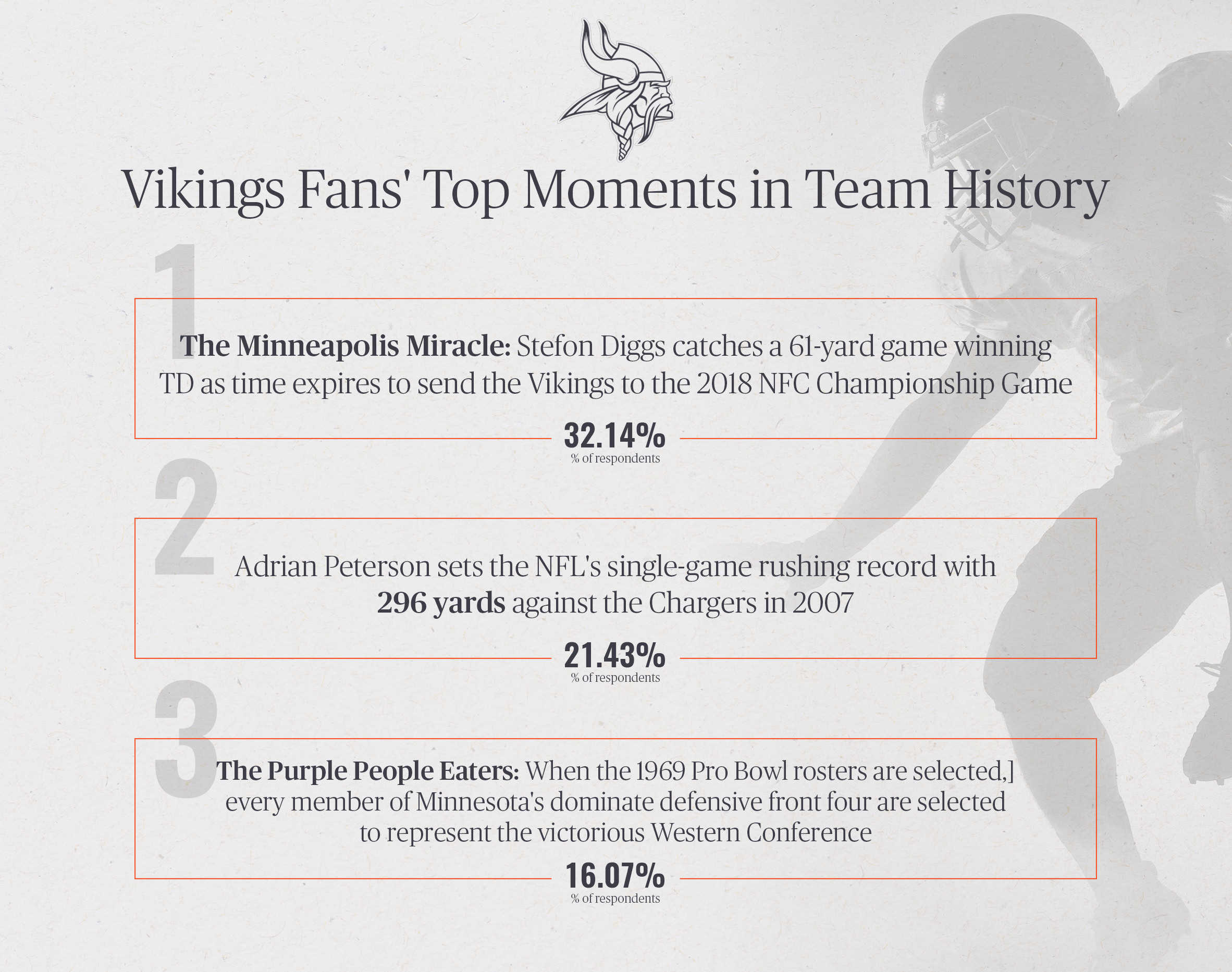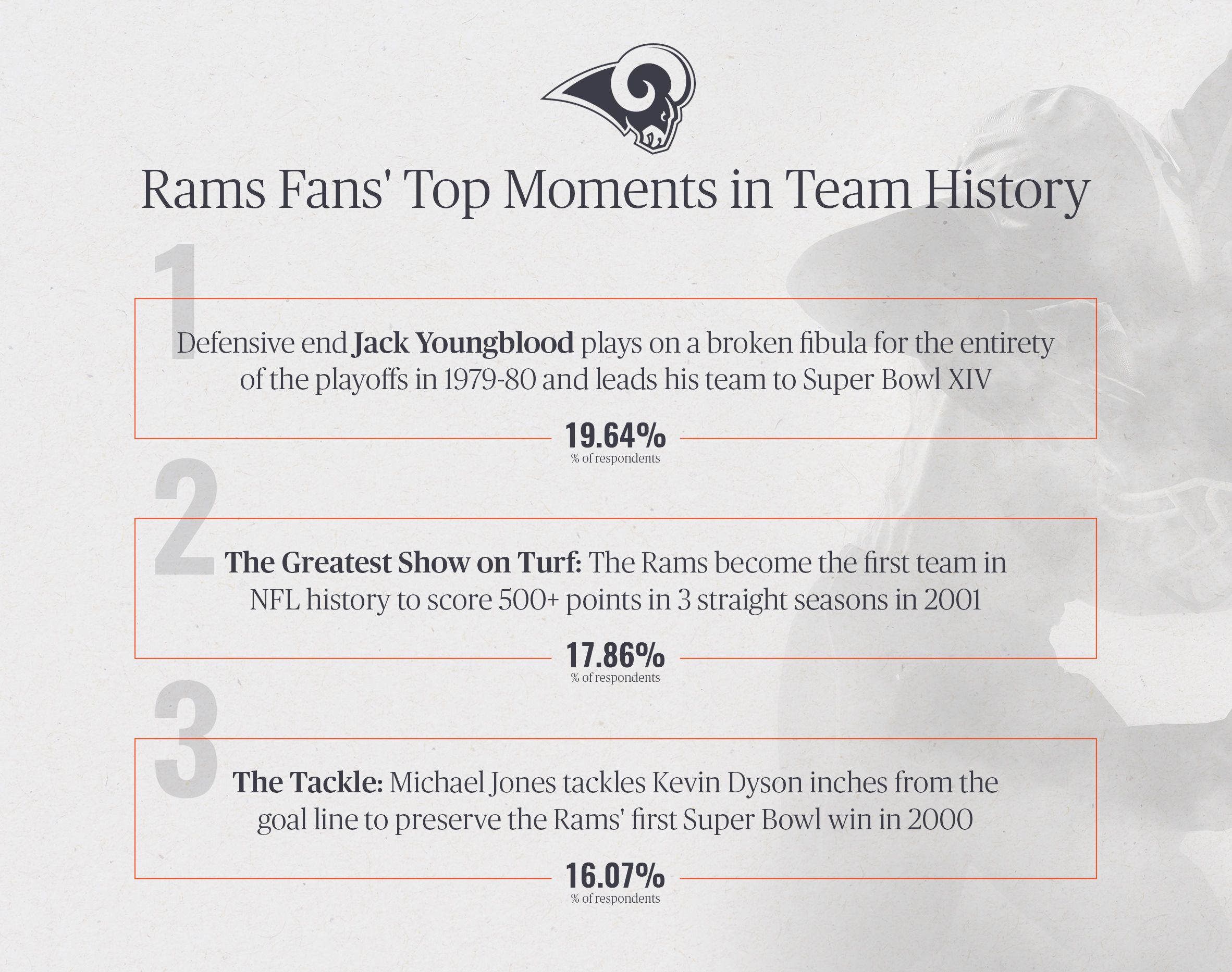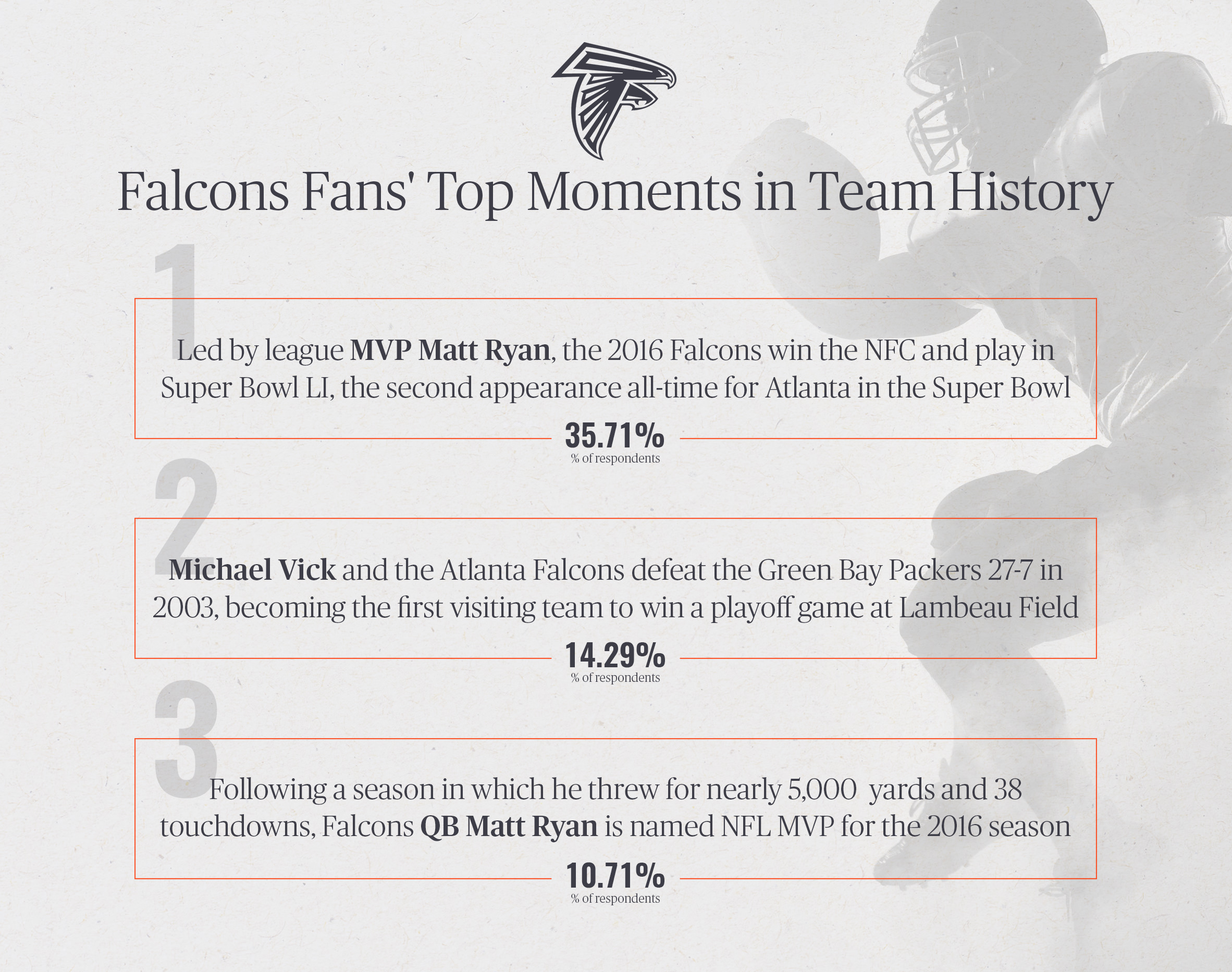 Framebridge surveyed 700 fans of select NFL teams to see what they would rank as the top moments in their franchise's history. Here are some of the findings: