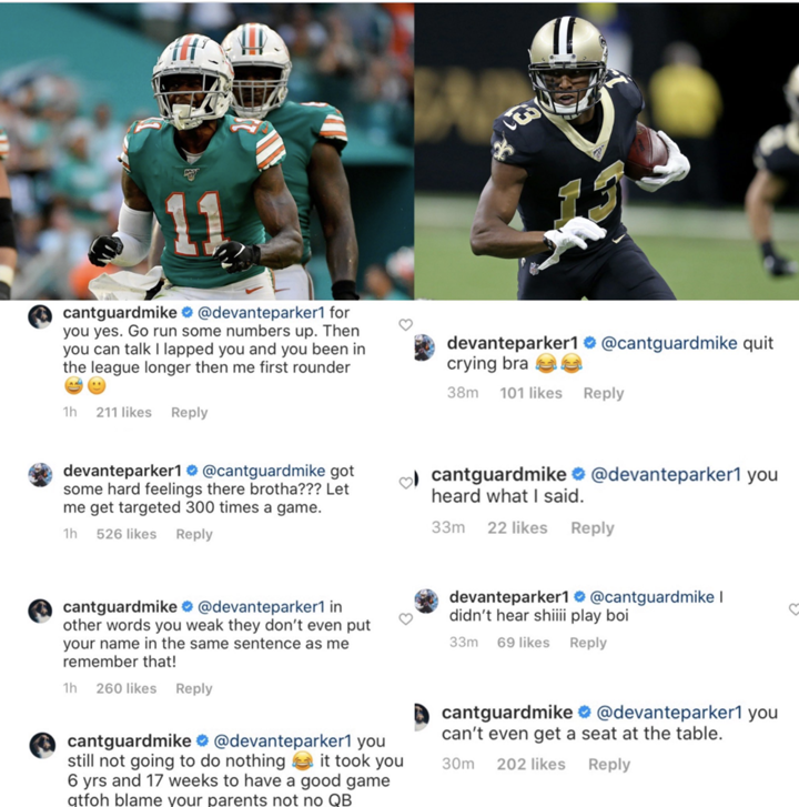 New Orleans Saints wide receiver Michael Thomas and Miami Dolphins wide receiver DeVante Parker got into a heated war of words on Instagram on Monday.