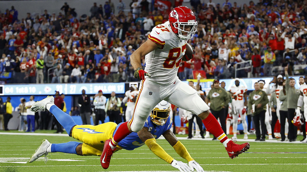Travis Kelce is unstoppable. The Chargers knew he was the one to worry about on the final drive Sunday night, shifting Derwin James down to cover him one-on-one. And yet, one of the league's best safeties still wasn't enough to slow him down in the red zone. When Kelce gained immediate separation off the line and into his crossing route, it was over. His third touchdown of the night with just 31 seconds to play put the Chiefs in front and served up another heartbreaker for the Chargers. Remember when we thought the AFC West could be anyone's division? Not when Kelce and Patrick Mahomes are still in Kansas City.