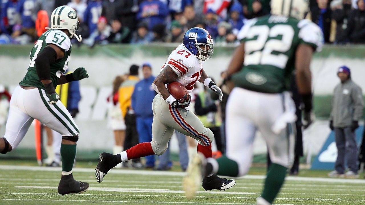 The Giants and Jets don't face off much, but proximity and pettiness enliven their encounters. The Jets hung black curtains inside MetLife Stadium in 2011 to conceal their co-tenant's Super Bowl logos. The Giants won that year's Christmas Eve game - Brandon Jacobs and Rex Ryan traded F-bombs at midfield afterward instead of shaking hands - and they lead the all-time series 8-6.