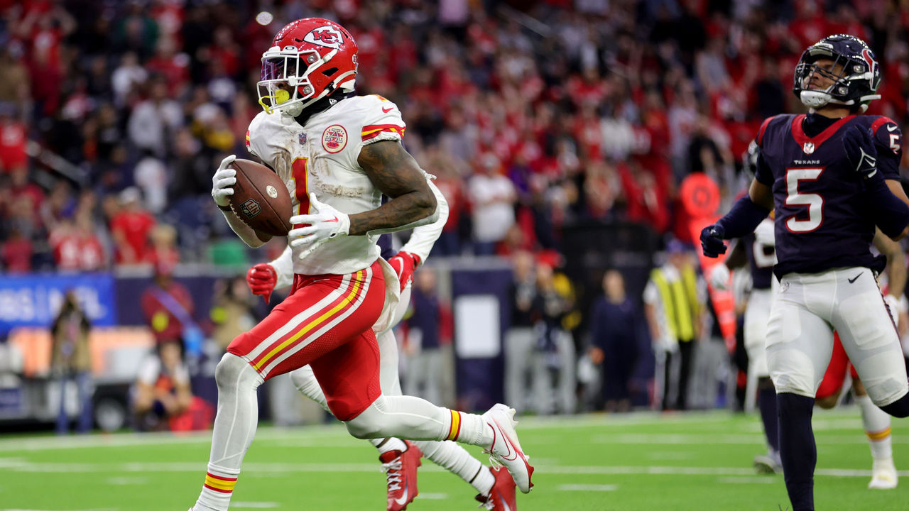 The more the Chiefs cycle through different options at running back, the more it becomes clear that Jerick McKinnon is their guy. He'll never be a high-volume ball carrier, meaning the numbers will never quite stand out on a season-long basis, but he does everything you could possibly want from a backfield running mate for Patrick Mahomes. He racked up 122 yards from scrimmage and two touchdowns in Sunday's win over the Texans, including a 26-yard run to win it in overtime. Isiah Pacheco is more than deserving of a role as the lead ball carrier, and Clyde Edwards-Helaire will get some work when he returns from injury, but McKinnon's ability as a receiver, not to mention his underrated upside as a slashing runner, has earned him the right to lead that group in snaps when we get to the playoffs.