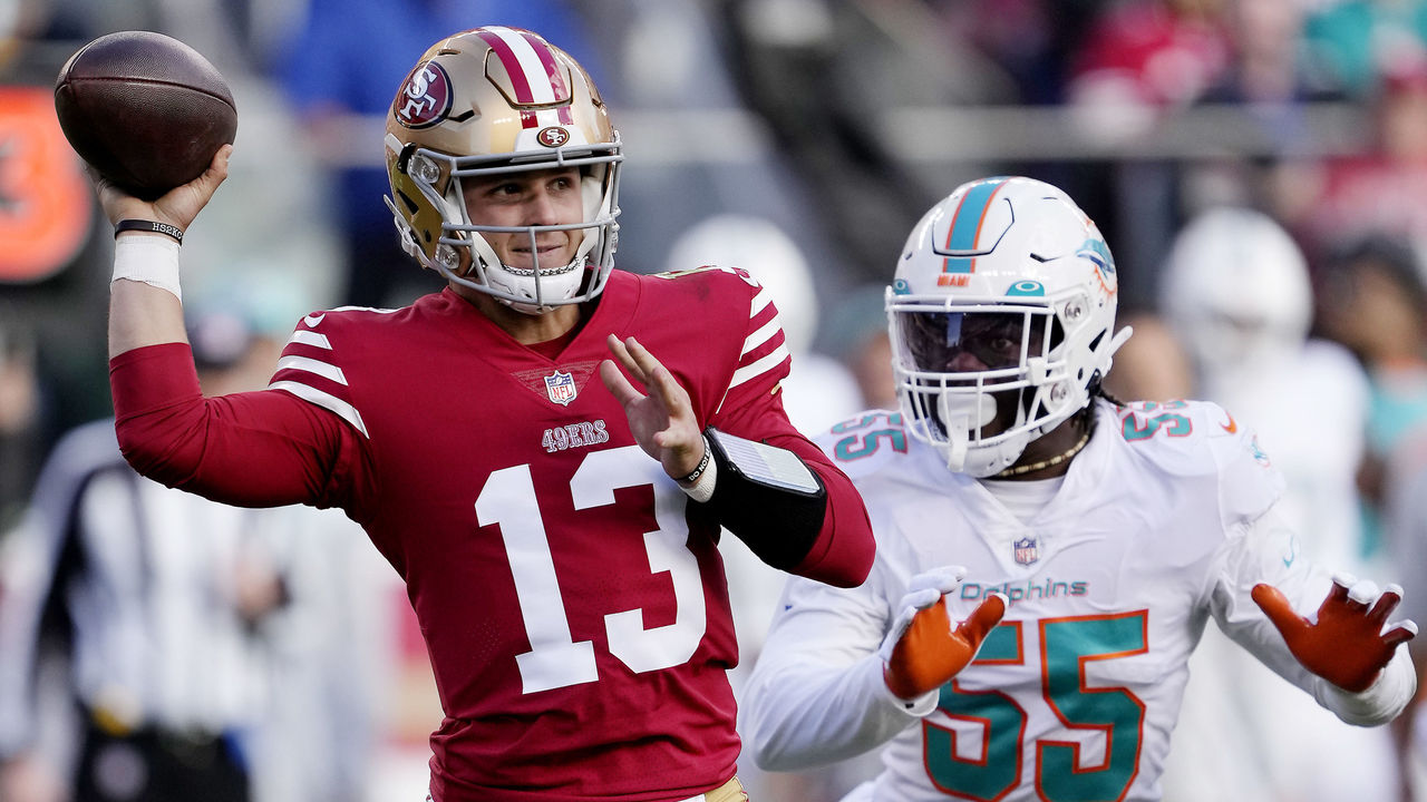 The Niners like what they see in newly promoted starting quarterback Brock Purdy. Seriously, they do. When I spoke with a team source Monday morning about the Iowa State rookie, I kept hearing the word "winner." Purdy was a four-year starter in the Big 12 and threw for 12,000 yards - the eighth-highest career total in the conference since 1996 - en route to becoming the winningest player in Cyclones history. He's of similar stature and size to Jimmy Garoppolo, and the comparisons don't end there. Purdy is comfortable in play-action and is a pretty good athlete who can move around. Like Garappolo, his arm is closer to average than elite, and he's a deft game-manager.
