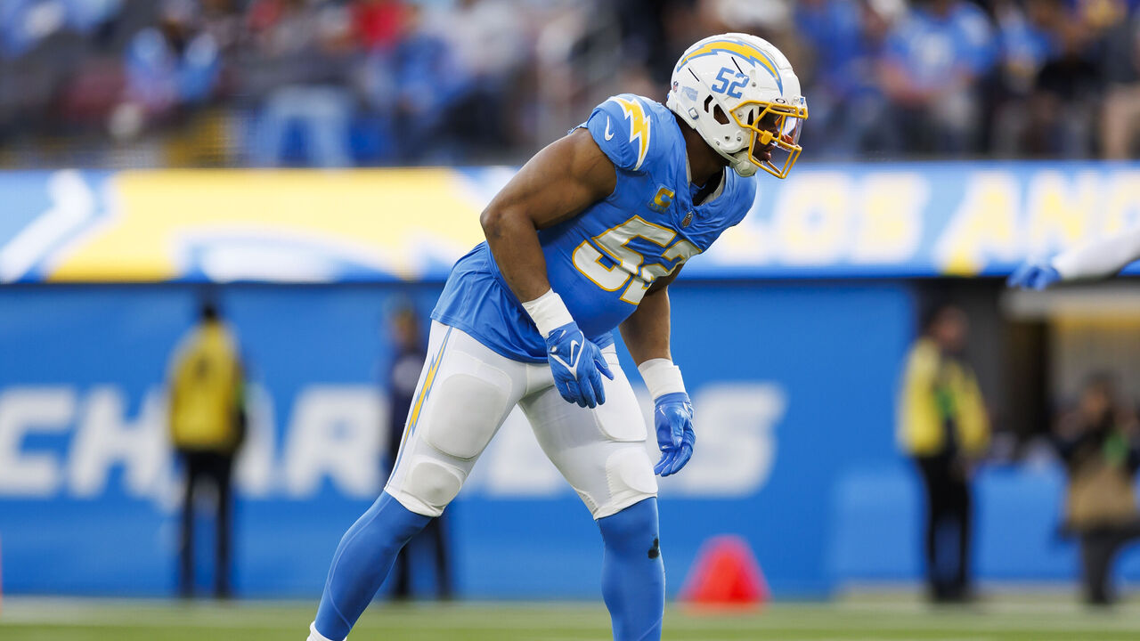 Khalil Mack turned 33 this year, but he remains the Chargers' best defensive player. The veteran pass-rusher tops L.A. in tackles for loss (two), QB hits (four), and sacks (2.5) so far this year.
