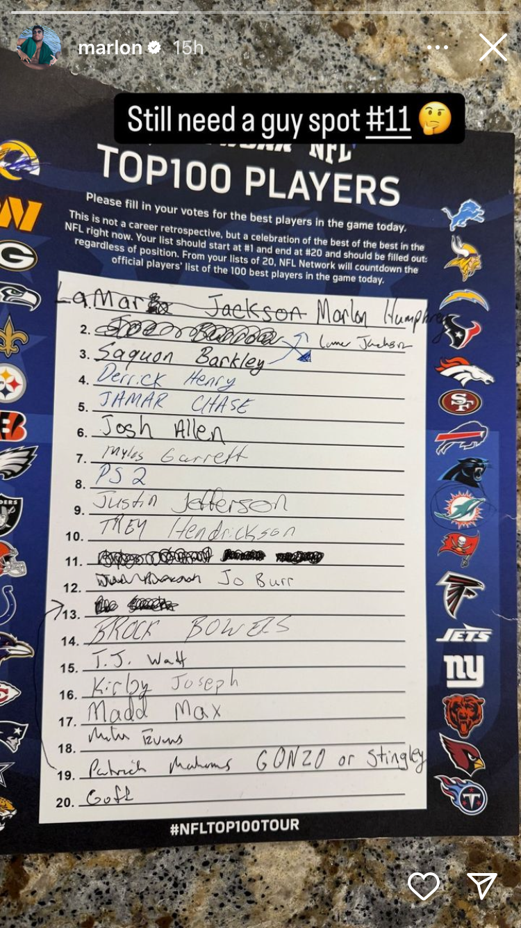 Humphrey shared his ranking of the top players in the NFL on his Instagram story Wednesday, placing himself in the top spot over star teammates Lamar Jackson and Derrick Henry.