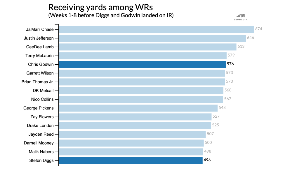 Diggs may not be as explosive anymore, and he tore his ACL in October, but the four-time Pro Bowler caught 47 passes for 496 yards and three touchdowns in just eight games with the Houston Texans before his injury.
