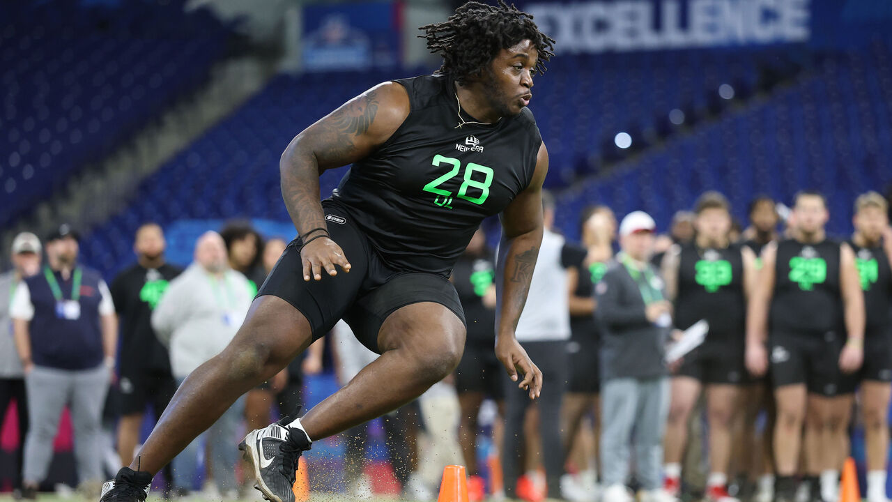 Membou posted the fastest 40-yard dash (4.91 seconds) among all offensive linemen that measured in at at least 6-foot-4 and 330 pounds since 2003, according to NFL+. While he won't be asked to run that far at the next level, his impressive 10-yard split (1.74 seconds) and jump testing showcased exceptional lower-body explosiveness that will allow him to block opposing defenders.