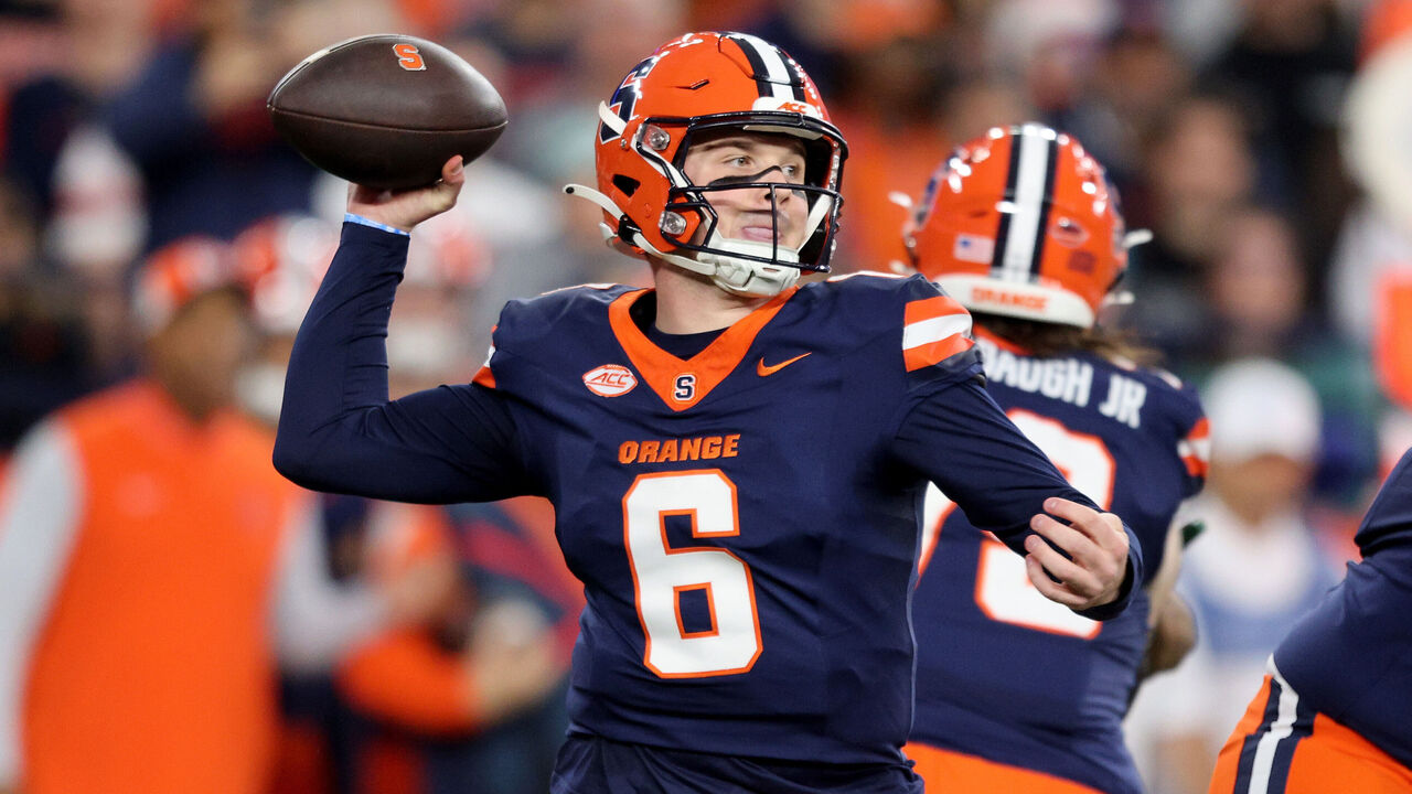 McCord is nothing if not confident. To his credit, the willingness to push the ball downfield and challenge tight windows was a big reason for his 34-touchdown breakout after transferring to Syracuse last year. But it's also why he threw 12 interceptions and accounted for 23 turnover-worthy plays, the second-worst mark in the nation, according to PFF. McCord doesn't quite have the arm talent to match his aggressive play style, and that could become an even bigger issue at the next level. His combination of accuracy and timing might provide fringe starter value if he can rein it in and take better care of the ball. If not, who doesn't love a high-variance backup providing the chance for some big plays when called upon? Either way, McCord should have a spot in the league.