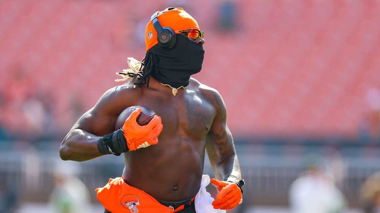 Cleveland Browns tight end Njoku suffered burns to his face and arm while trying to light a firepit. Luckily for Njoku, he was ready to go for the team's next game against the Baltimore Ravens, although he did show up to the stadium wearing a full facemask. - Nick Baldwin