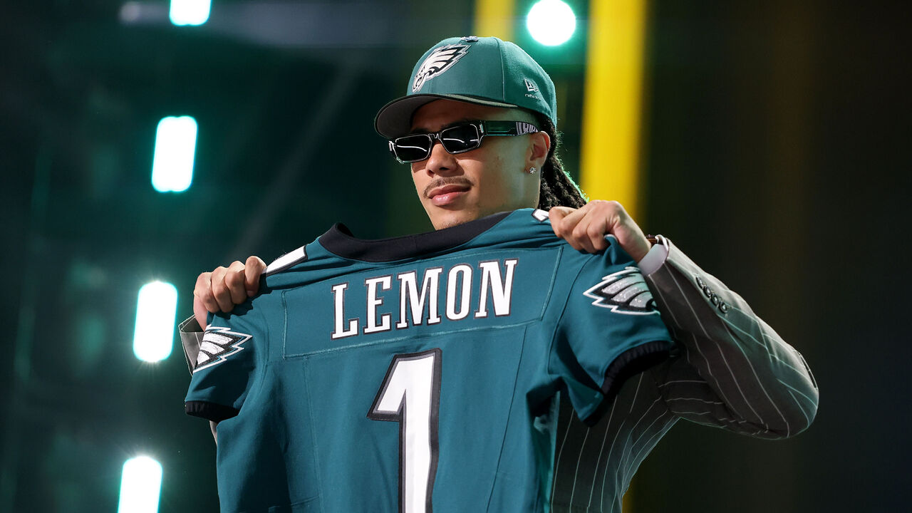 Howie Roseman does it again. Offensive line was a popular pick for the Eagles in industry mock drafts, but wide receiver always lingered as another realistic possibility with A.J. Brown seemingly on the way out the door. Lemon was my No. 1 overall receiver in this class, so it goes without saying that I see this pick as incredible value. He creates separation as well as anyone in this class, he's a dynamic playmaker after the catch, and his competitiveness goes a long way toward compensating for any lack of size. Lemon's superstar potential out of the slot should be an outstanding fit alongside DeVonta Smith in a new-look Eagles offense.