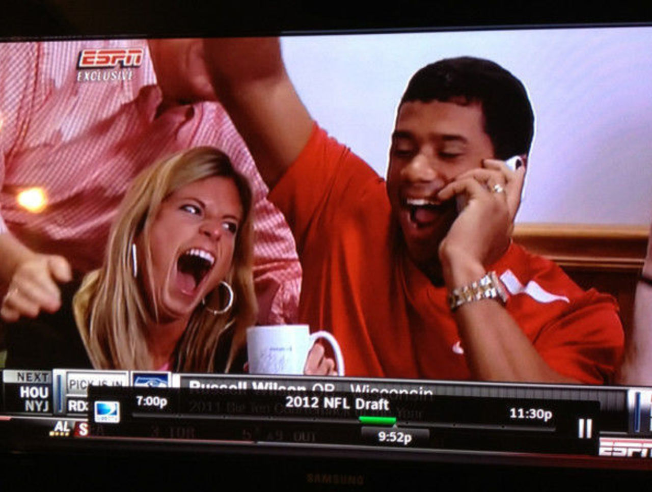 Here they are during much, much, much happier times when Wilson was drafted two years ago. Ashton’s inner dinosaur was showing.