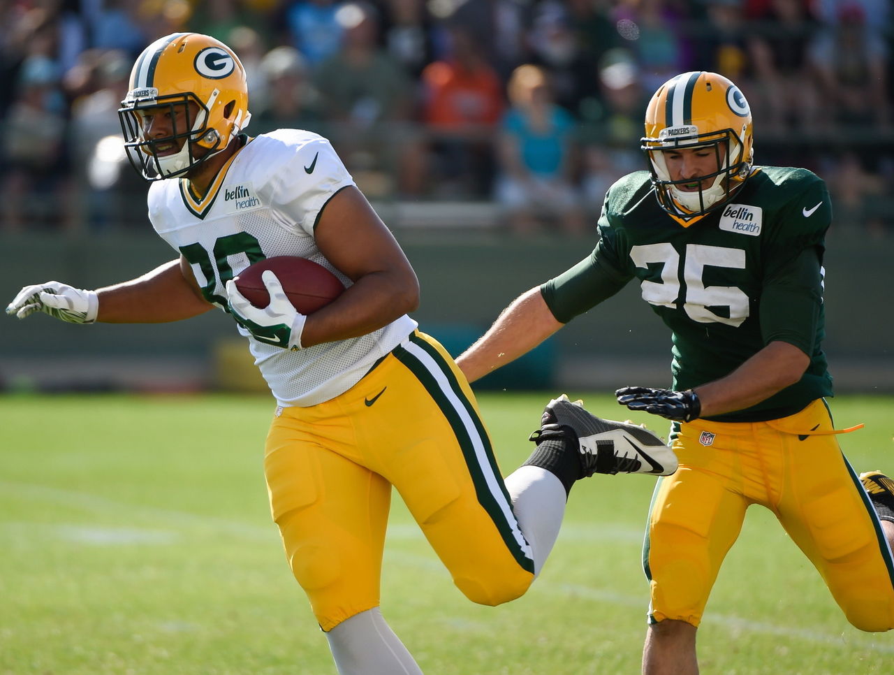 Since being drafted, Rodgers has impressed in competing in the tight end shuffle. He’s battling Quarless, Bostick and Taylor for the starting job and may even have a leg-up on them after strong practices, where he’s impressed teammates with his route running.