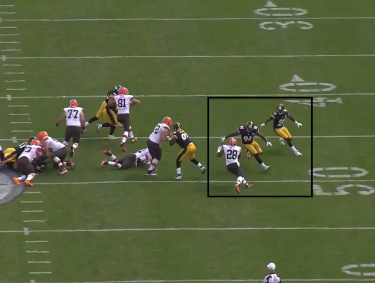 Later in the third quarter against the Steelers, West took too long to slash inside off of the right guard’s inside hip. It was a stretch run. He took three steps to commit to the alley between the center and left tackle despite a lurking linebacker in the next gap to the right. There wasn’t anywhere else he could have run. Still he was hesitant. Unsure. He took another three steps to jump-cut and nearly ran into the left leg of the center where he was ganged up on by the Steelers and pushed to pickup four yards.