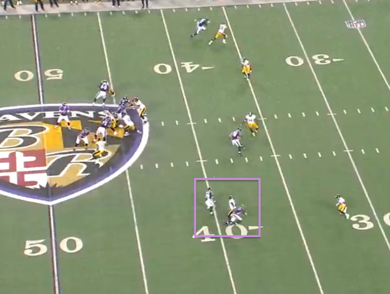 On third-and-10 during the second quarter, Smith lined up outside in the Ravens’ twins set and never motioned back inside. Even though the Ravens weren’t going to move him, despite Haden playing man coverage, they still managed to create a free release for him.