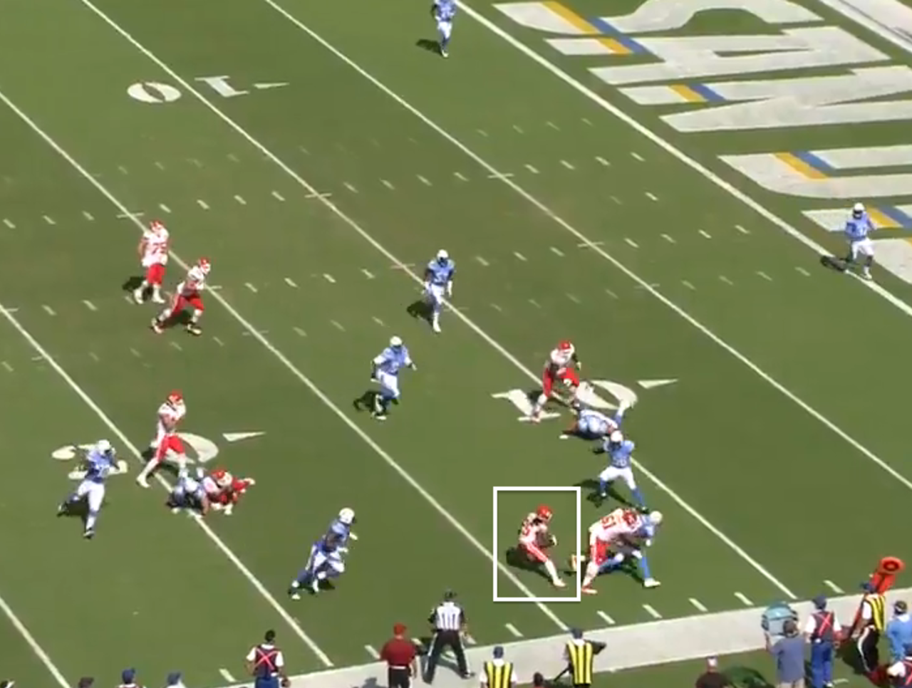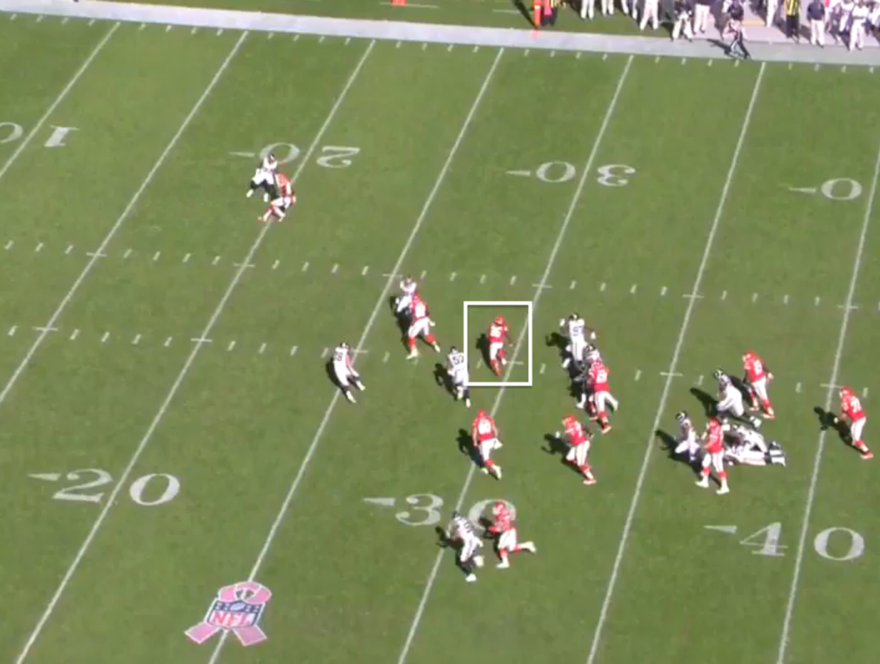 On his 13th carry at the start of the fourth quarter, Charles took a handoff from I-formation similar to the one against the 49ers.