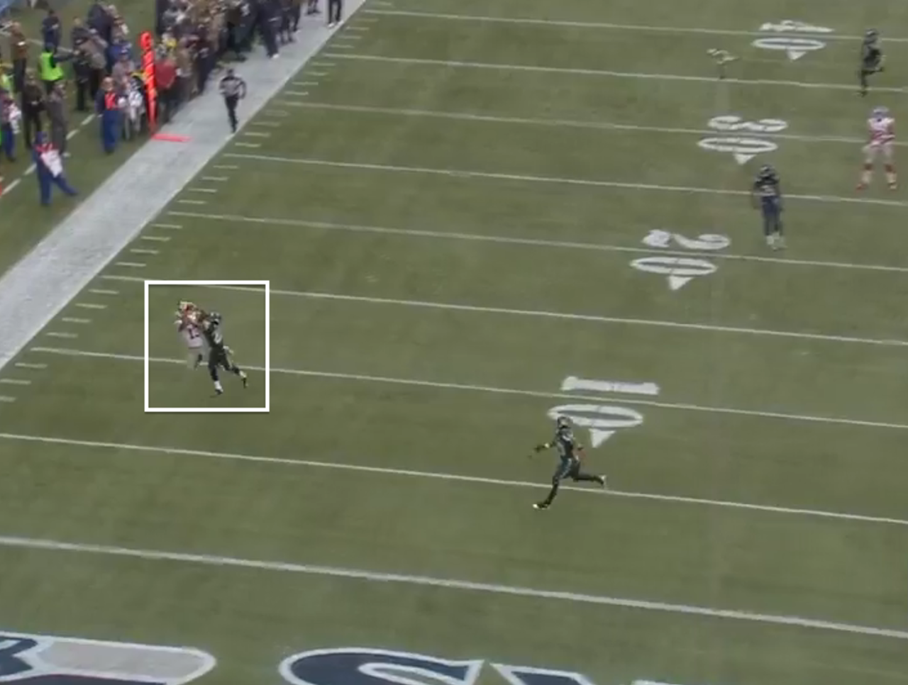 He ran downfield, each step closer to the sideline until he was plastered to it, boxed out a yard or two away from out of bounds. The ball came down by the 30, and he magically separated, finding his way behind the cornerback to two-hand the ball as he fell out of bounds. He couldn’t get both feet in, however.