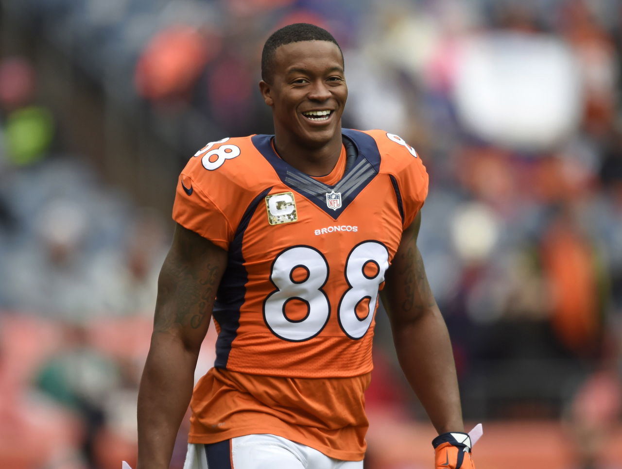 Demaryius Thomas caught three of Manning's touchdown passes, becoming the third Broncos player to go for a hat trick in a game (Julius Thomas, Emmanuel Sanders). Life's good when you're catching passes from Peyton Manning.