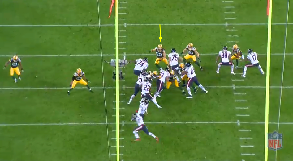 In Week 10, facing the division rival Chicago Bears, the Packers defense stifled the same rushing attack that ran for 235 yards against them in Week 4. Matthews, in particular, made a difference leading with fundamentally sound and aggressive backfield reads.