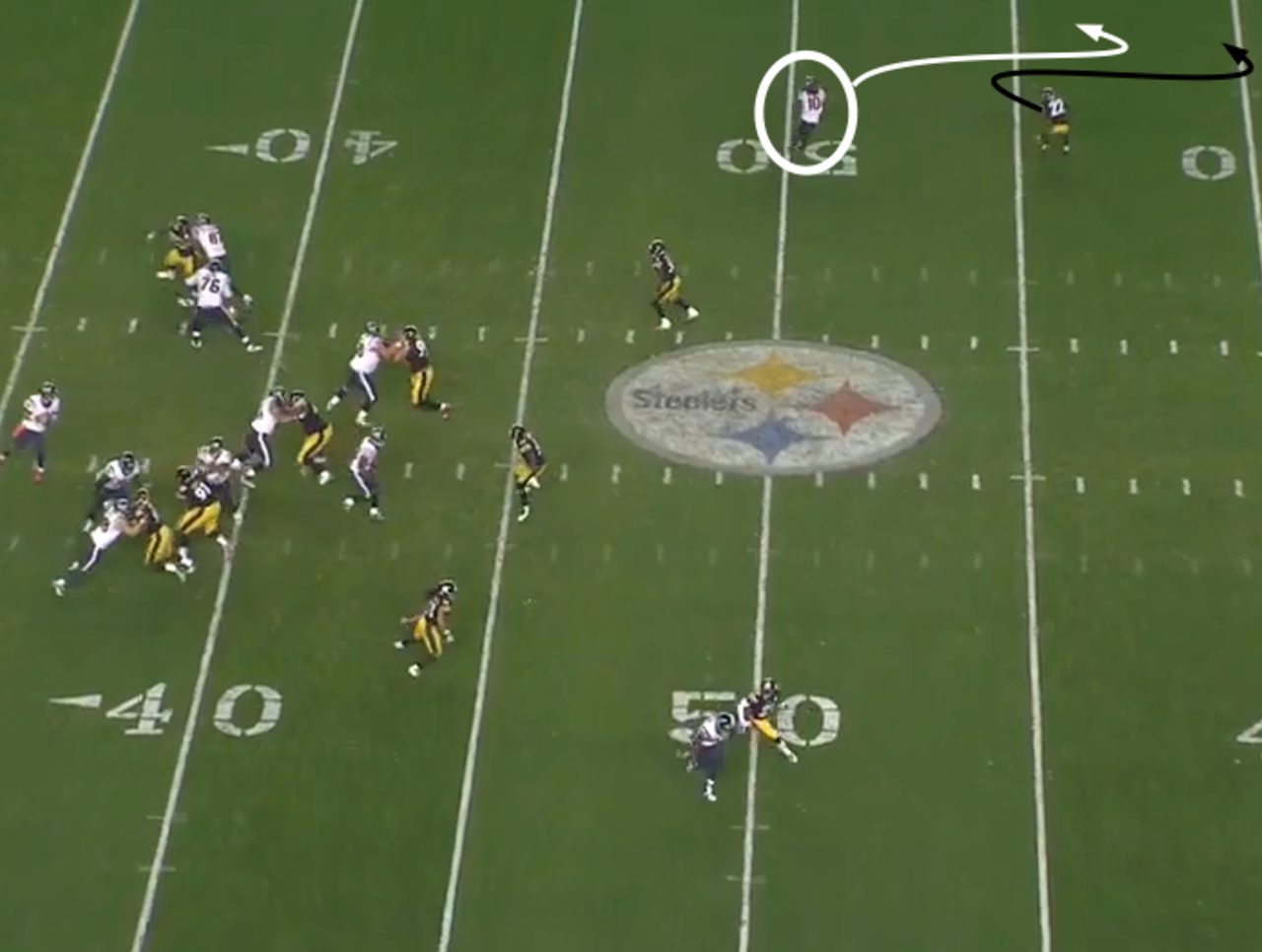 The Texans faced the Pittsburgh Steelers in Week 7. Halfway through the third quarter, Houston had a first-and-10 near midfield. Hopkins was in a tight split off to the left when he took three steps and rounded outside.
