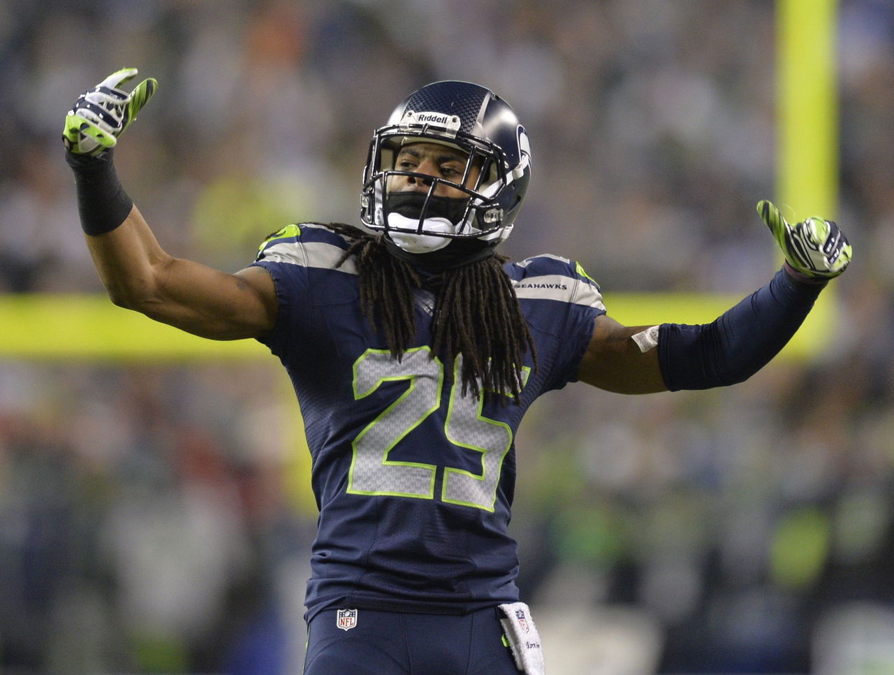 Arguably the league's best cornerback, Sherman was a converted wide receiver at Stanford who was overlooked due to his lack of straight-line speed. The Seahawks saw a gifted athlete with excellent press coverage technique, and Sherman emerged as a ten-game starter in his rookie year. Sherman was named to three consecutive first-team All-Pro teams, and was an integral part of the Seahawks' first Super Bowl victory.