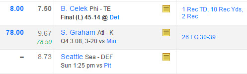 Graham's actual stats? One 31-yard field goal and one extra point, worth four fantasy points in most leagues.