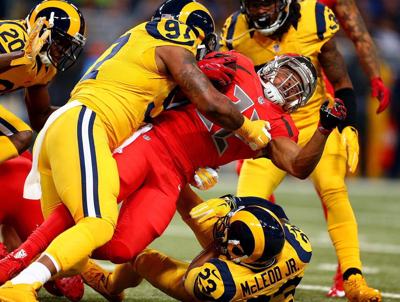 If the Rams are mustard, then the Bucs are ketchup, wearing their all-red uniform in this battle of the condiments: