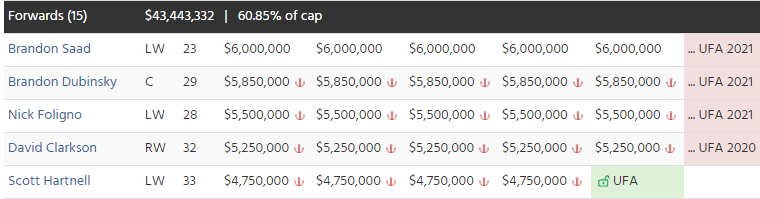 But while Saad is rightfully being compensated as the team's highest-paid skater, the unfortunate thing is that Columbus is hamstrung by a number of expensive contracts doled out to older forwards.
