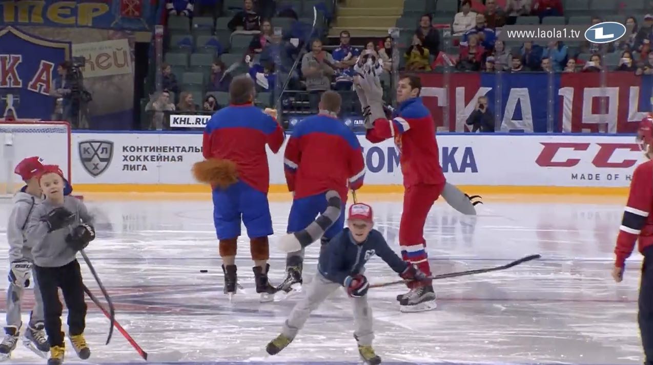 A group of Russian kids thought they were playing a fun game against some mascots during an intermission of a KHL game between SKA St. Peterburg and Lada Togliatti on Friday, but it turns out they were actually on the ice with Alex Ovechkin, Evgeni Malkin and Evgeny Kuznetsov.