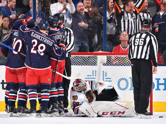 NOTES: Columbus D Ryan Murray suffered what the team called an ''upper-body injury'' in the first period and did not return. He may have taken an elbow the head. ...The Nationwide Arena crowd of 15,789 included a large, vocal contingency of red-clad Blackhawks fans. ... Columbus ended a streak of nine October losses at home dating to 2014. ... Bobrovsky and his mates also held off a fierce six-shot Chicago rally in front the net in the last 90 seconds of the second period. ... Columbus' Matt Calvert was penalized 2 minutes for goalie interference in the third period when he tripped Crawford, who came out of the crease to retrieve the puck. The video replay seemed to show that the contact was marginal.