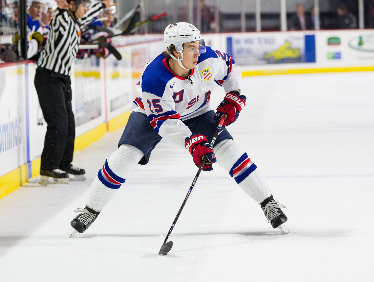 The U.S. group hails almost exclusively from the NCAA ranks, with Edmonton Oilers fourth round selection Caleb Jones the lone defender plying his trade in the CHL.