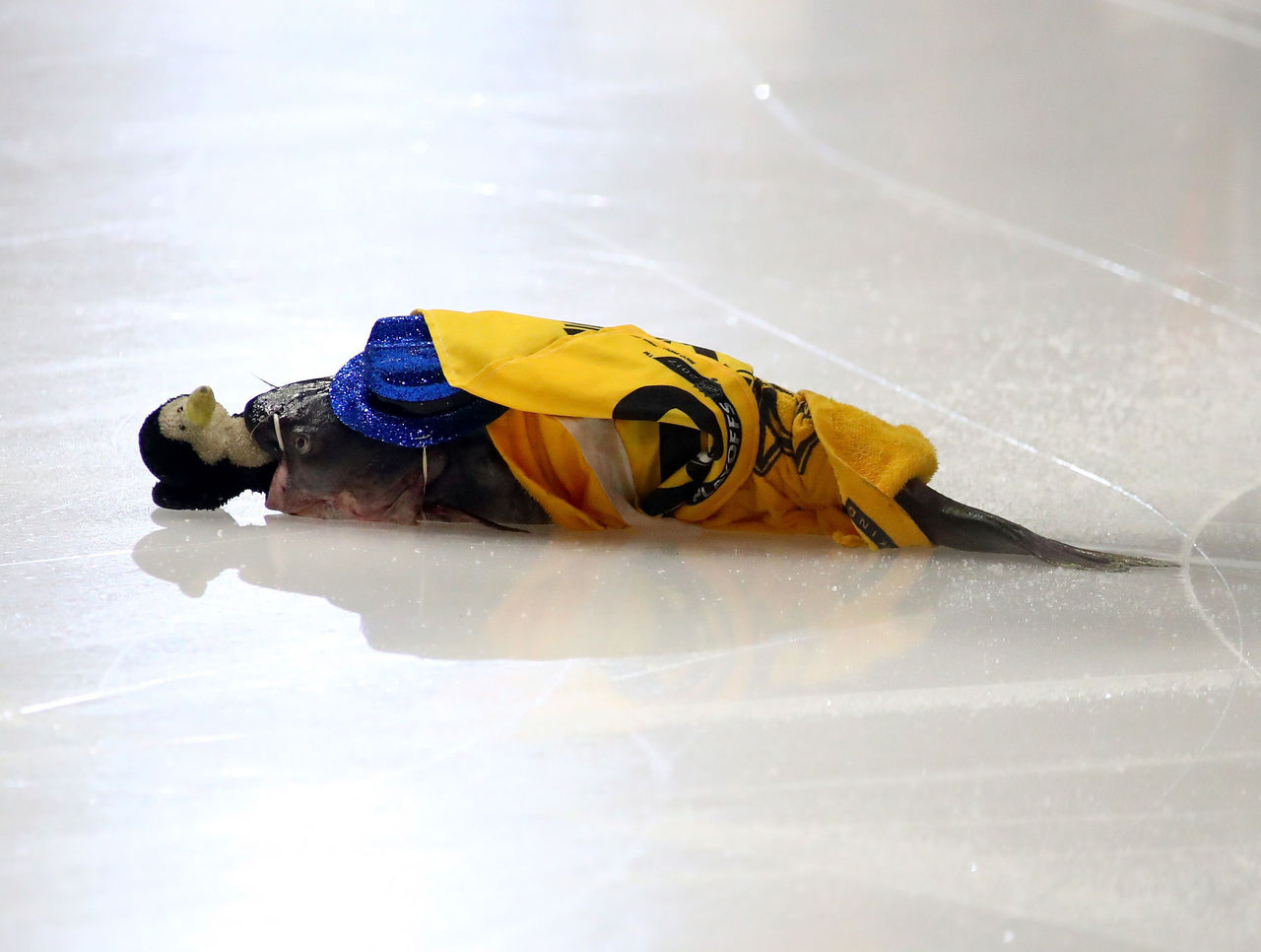 Look: Catfish with toy penguin in mouth tossed on ice prior to Game 4