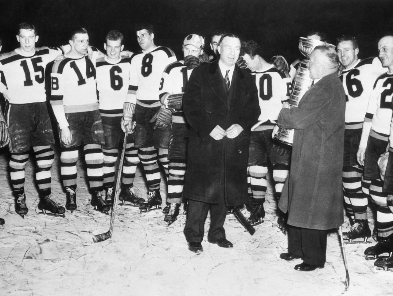 This edition of the Bruins had plenty of star power, but none shone as brightly as netminder Frank Brimsek, who posted a 33-9-1 record with an incredible 1.56 goals-against average and 10 shutouts to pace the league's best goal-prevention unit. The Bruins outlasted the Rangers in seven games, then cruised past Toronto 4-1 to claim their second NHL championship.