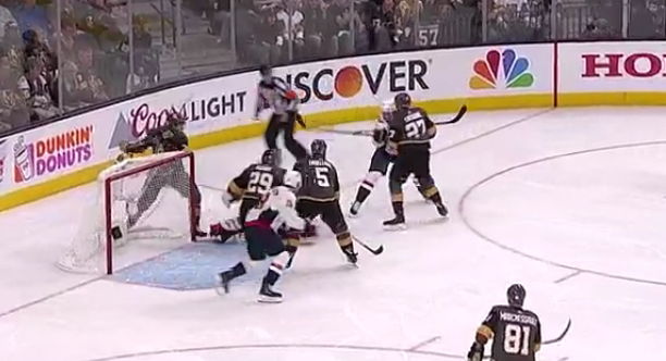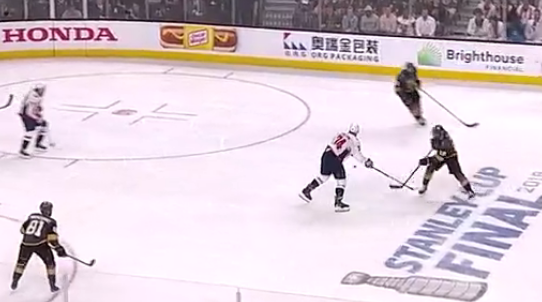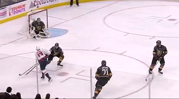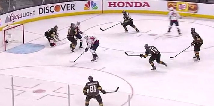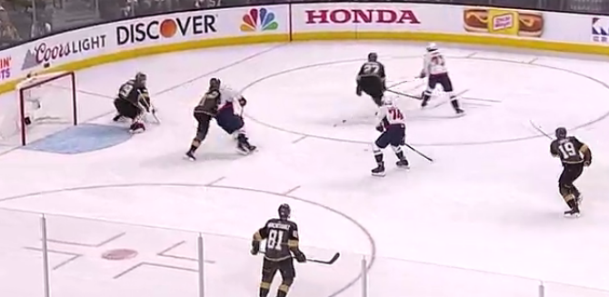With Vegas ahead 3-2 nearly halfway through the middle frame, Washington rookie Jakub Vrana broke into the attacking zone one-on-three - a harmless looking play.