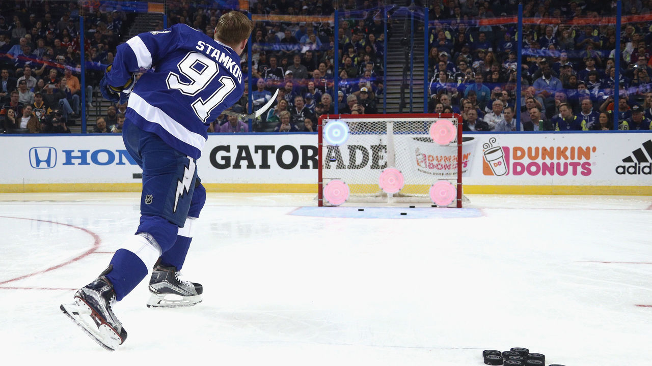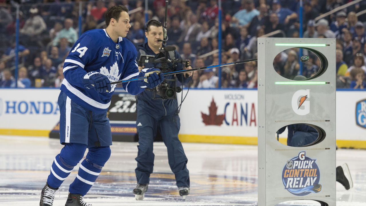 Eight players will take part in three components: stickhandling through a series of 10 pucks in a straight line, controlling a puck through eight cones in a zig-zag formation, and guiding the puck through a lit rung on a gate.