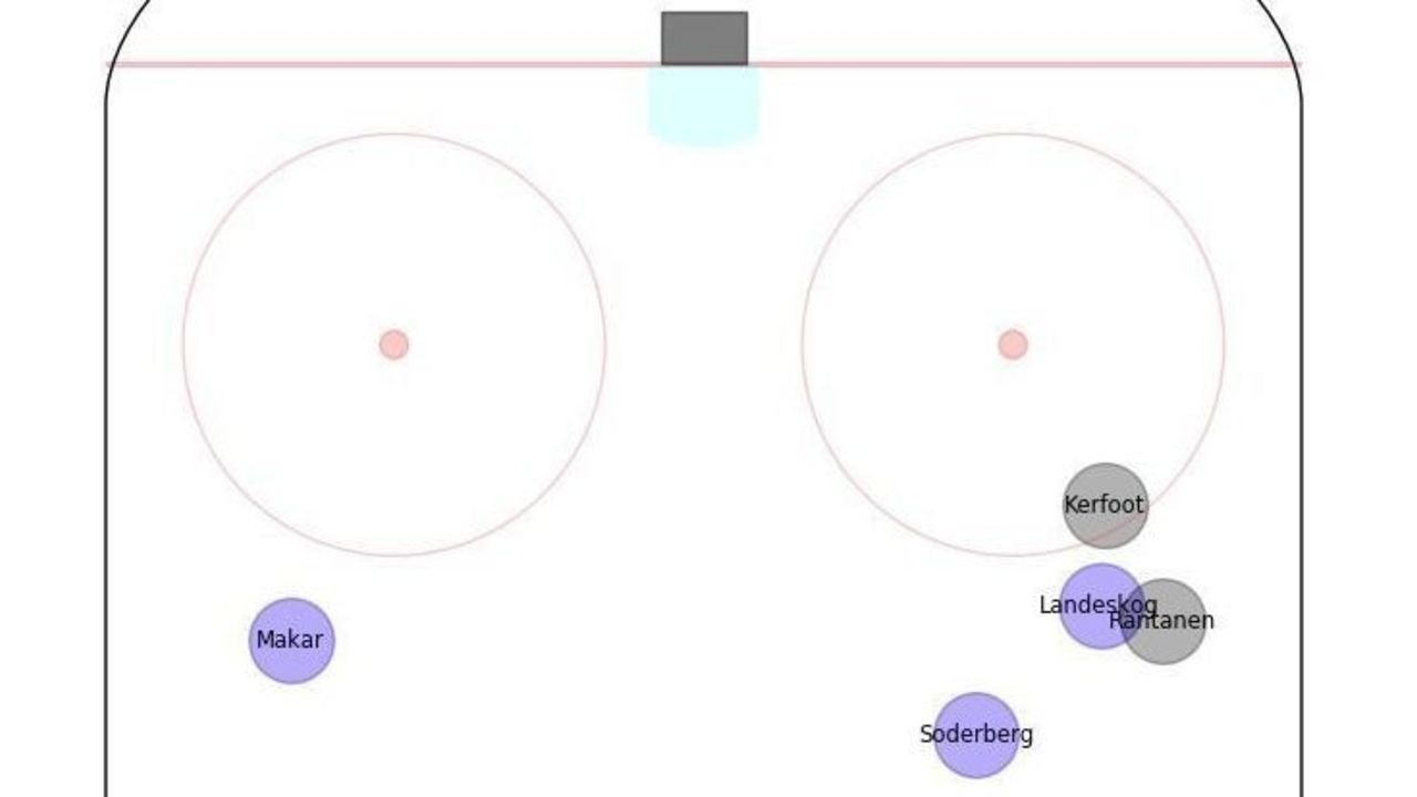 Game 7 was particularly painful. They managed a total of five shot attempts on three opportunities, and none of the attempts were dangerous. Here's HockeyViz.com's visualization of the Avalanche's power-play shot generation, with blue circles denoting a shot on goal and grey circles representing a missed shot: