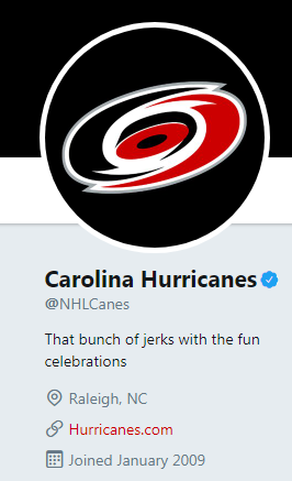 The Hurricanes changed their Twitter bio shortly after Cherry's comments.