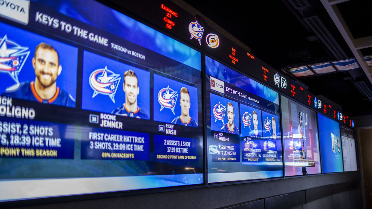On this particular night, Murphy and VP of hockey ops Rod Pasma man the bridge, an elevated strip inside the Situation Room. Five 90-inch screens are mounted at the head of the room. Above those screens, a ticker displays the operators and on-ice officials assigned to each active game. Monitors on a side wall ensure there's no shortage of visual aids.