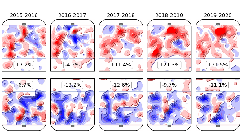 Here's a look at his isolated impact on both ends of the ice over the past five seasons, according to Hockey Viz.