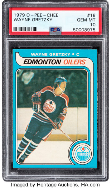 There are only two specific 1979 Gretzky O-Pee-Chee cards to receive a Professional Sports Authenticator 10 gem mint status, making it extremely rare.