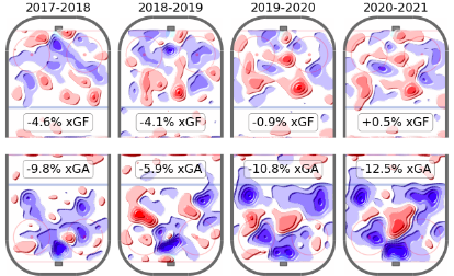 The 6-foot-1 grinder has put together a strong body of defensive work in recent years. Foligno's done a terrific job of nullifying his opponent's attack by limiting shot attempts at five-on-five, according to Hockey Viz's isolated impact. (Red or positive is good on offense, while blue or negative is good on defense).