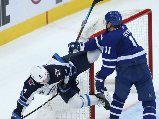 Hyman was assessed a two-minute high-sticking penalty on the play in the final minutes of Toronto's 5-2 loss to the Jets on Thursday.