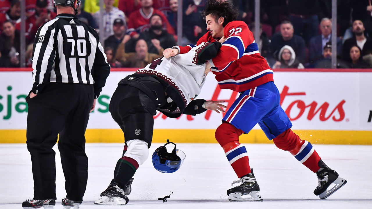 Xhekaj's even a fan favorite beyond Montreal and Quebec thanks to regular appearances on national highlight reels. He loves delivering thunderous body checks; has willingly participated in heavyweight tilts (Deslauriers, Pat Maroon, Zack Kassian, and Austin Watson are on his fight card); and is open to chatting about his recent duties stocking shelves at Costco.
