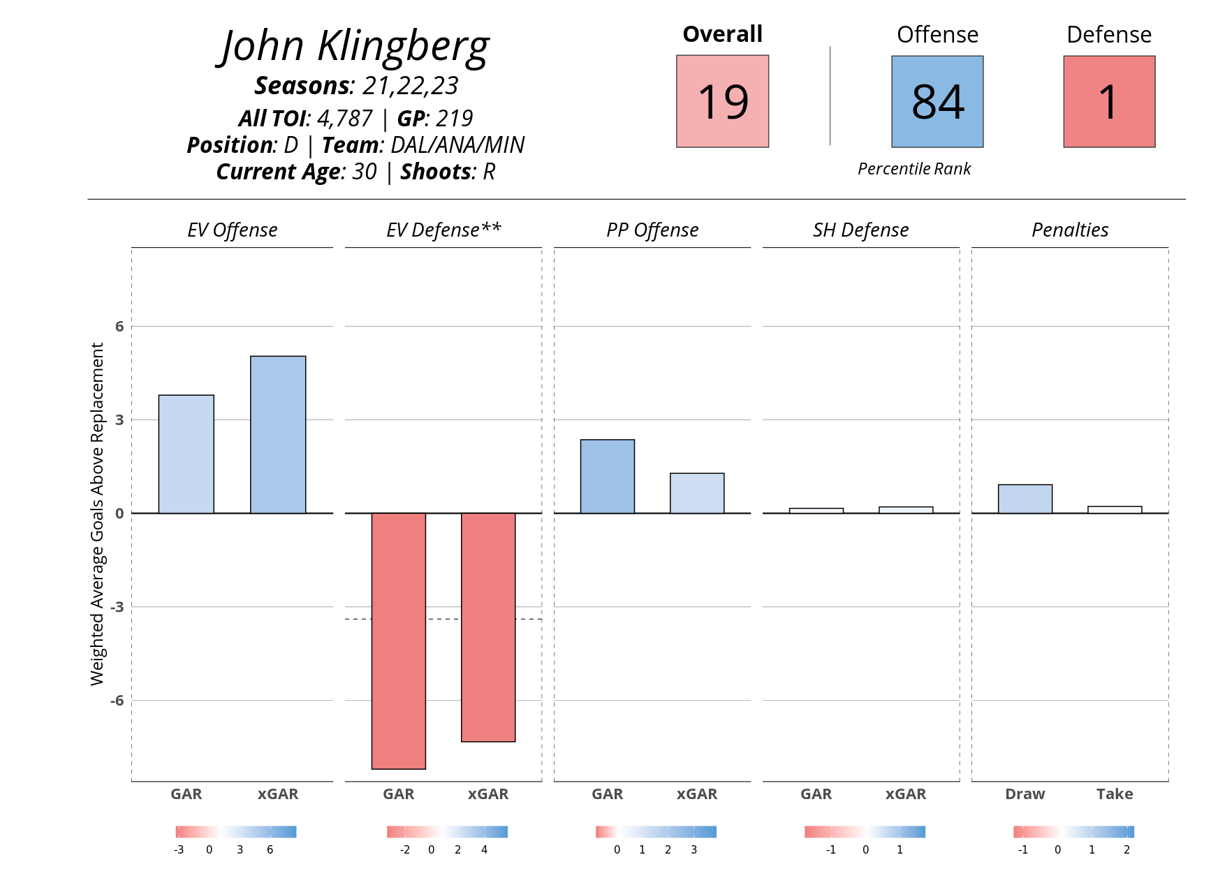 Klingberg managed 33 points in 67 total games this past campaign while averaging over 20 minutes per night. The soon-to-be 31-year-old has been a strong offensive contributor for much of his nine-year career, but his defensive impact in recent seasons leave much to be desired.