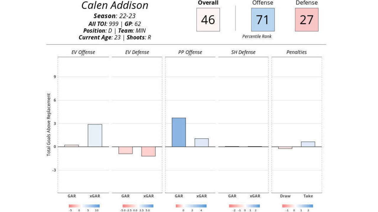 Addison is expected to quarterback the top power-play unit once again. At five-on-five, he'll battle with fellow youngster Brock Faber for top-four minutes on the right side of Minnesota's blue line behind captain Jared Spurgeon.