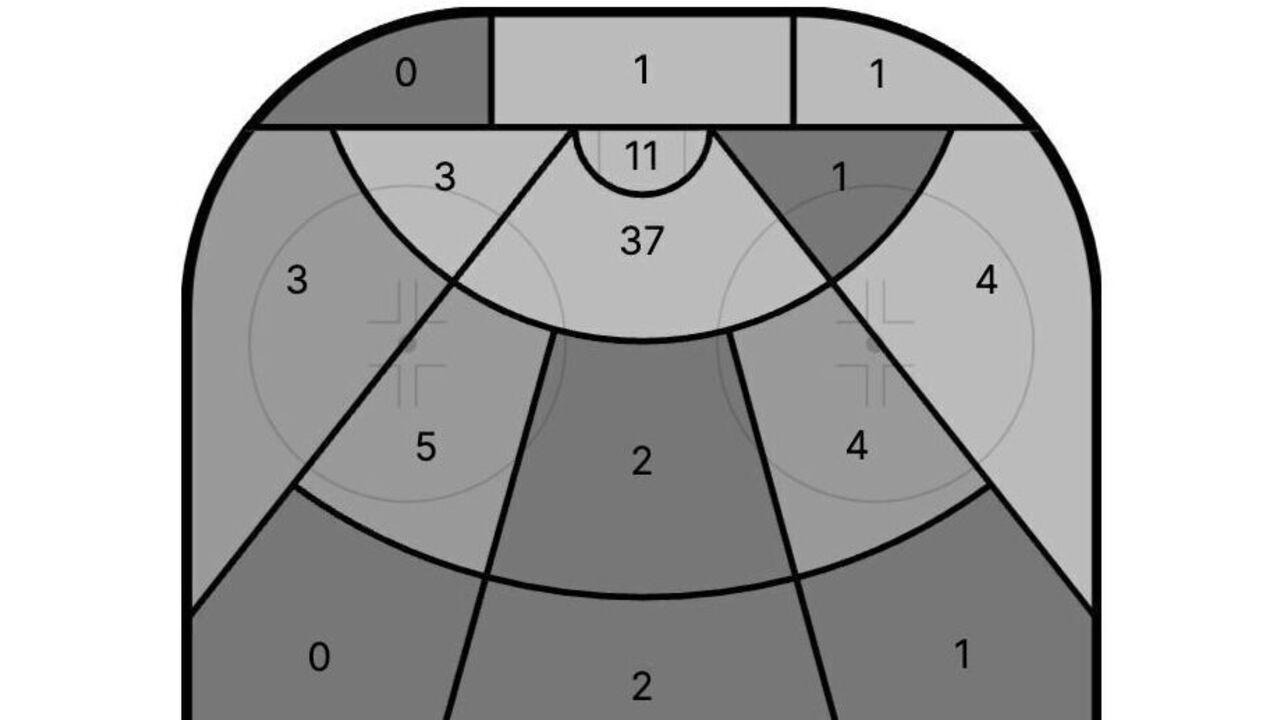 All modern NHLers try to attack from the slot to some extent. Knowing his role and putting his head down, Hyman takes that tactic to the extreme. Seriously, look at the number of shots he's fired from the opposing goalie's kitchen this postseason. Of his 76 total shots, 48 are from the crease or just outside it.
