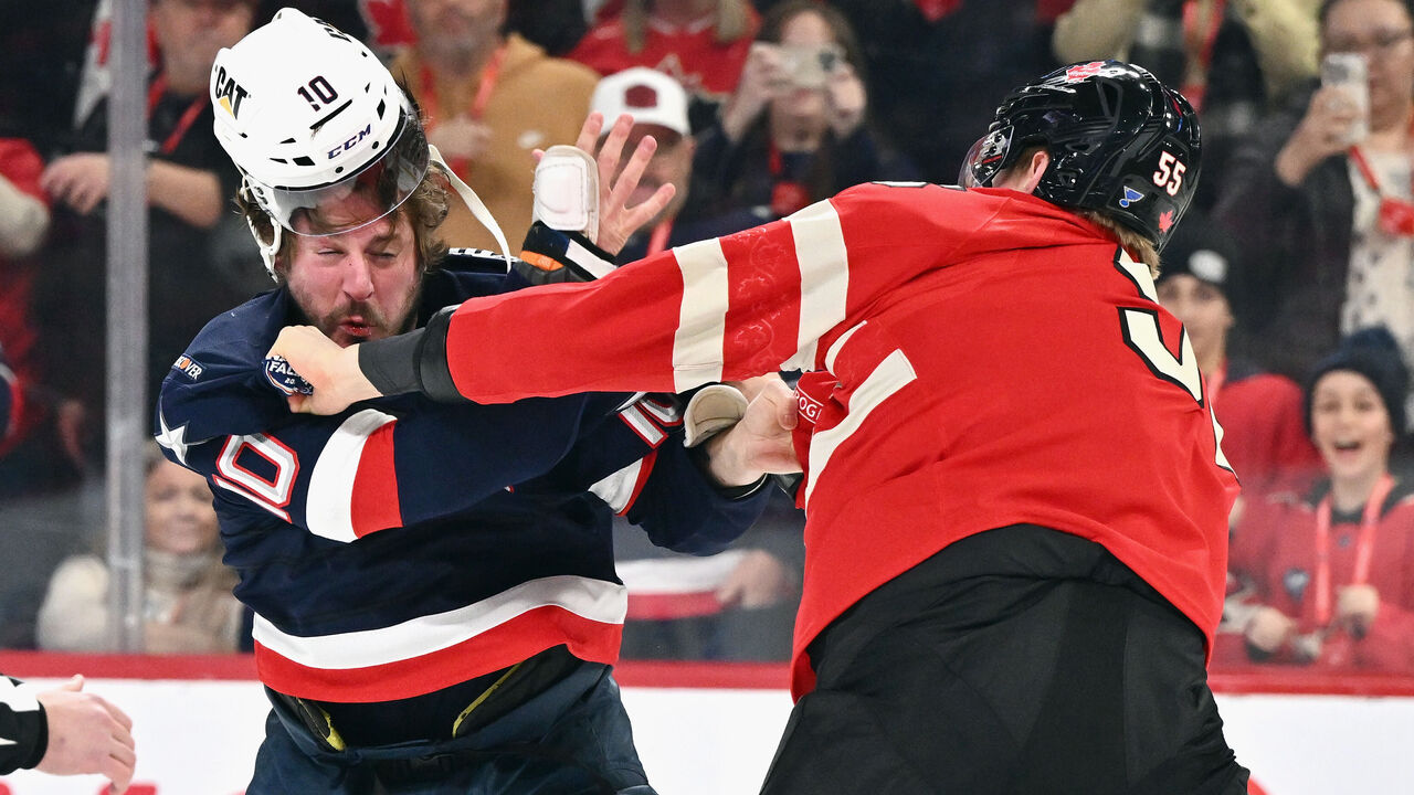 The marquee matchup of the 4 Nations' round-robin schedule had been highly anticipated, especially following an exceptionally strong first three games of the tournament. But nothing could prepare anyone for the primal, arm-hair-raising atmosphere, which was enhanced by pregame hype from legendary MMA fighter Georges St-Pierre. (Canada prime minister Justin Trudeau was also in attendance - though he didn't appear on the Jumbotron like other celebrities.)