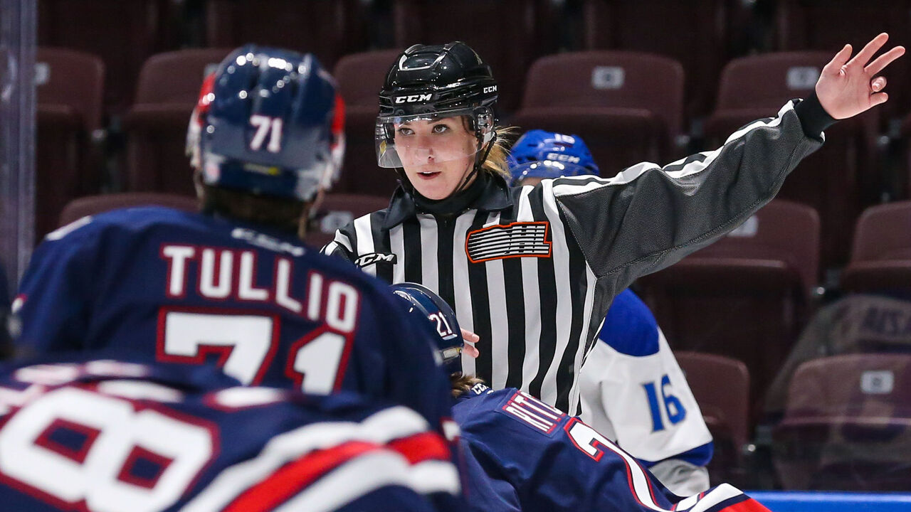 Harris is quick to pick the brains of fellow officials. She recently asked an NHL-contracted ref about the jump from the AHL to the NHL. The more experienced official noted that penalties are easier to spot in the top league.