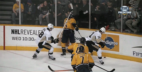 James Neal of the Pittsburgh Penguins found himself in the penalty box late in the first period of Tuesday's game against the Nashville Predators after this hit from behind on defenseman Michael Del Zotto.